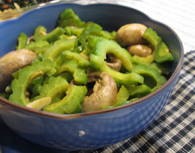 --- baked Japanese sweet potato fries | sauteed bitter melon and mushroom | tofu with mushroom and pickled green bean sauce | parboiled greens | rice || homemade mochi